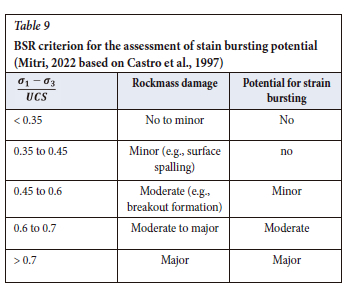 Adopting the work of Castro et al. (1997) on rockmass damage initiation, Mitri (2022) explains the application of BSR in hardrock mining to evaluate rockburst potential. The key aspects of the criterion are summarised as follows: