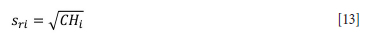 The constitution heterogeneity (CHi) is the relative variance of the sampling error, scaled by sample and lot sizes, and the relative standard deviation (sri) converts CHi to standard deviation for size classes, Sr as follows: