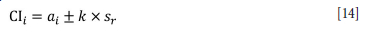 Where ai is the mass fraction, k is the coverage factor of 1.96, giving 95% and 3.0, giving 97.5% confidence intervals and sr is the standard deviation.