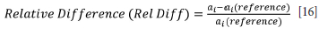 The relative difference between the mass fractions of the reference standard (Table 5) and the three test samples, is calculated using Equation 16 and is shown for SAMPLE 1, SAMPLE 2, and SAMPLE 3, in column 8 of Table 6. These values are plotted against the confidence intervals of the standard, as shown in Figure 4.