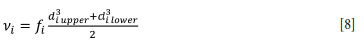 where fi is the shape factor; a default value of 0.52 should be used; the average fragment mass per class interval is the product of the density and Vi.