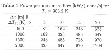 The power per unit mass flow is then: