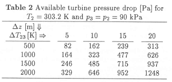 • The available pressure drop across the turbine is Δpt = P3gΔzΔT23/T2. It is proportional to the turbine inlet density, to chimney height and collector temperature rise and inversely proportional to collector inlet temperature.