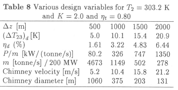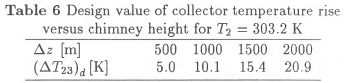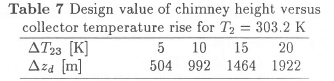 Table 7 reflects the dependence of design chimney height on collector temperature rise.