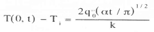 The current used to sense the voltage drop across the diode must not influence the temperature measurement by heating the diode significantly. The energy dissipated by a typical diode with a 100 mA sensing current is 0.7 W/cm2. While this may seem like a large heat flux, it must be remembered that the sensing current is only applied for a very short time (typically 1 ms if scanning occurs at 1 MHz for a 32 x 32 array). An upper bound on the temperature rise of the surface, can be obtained by assuming, that the silicon substrate acts as a semi-infinite solid subjected to a step change in wall heat flux (Incropera and Dewitt7):