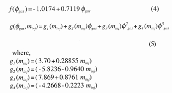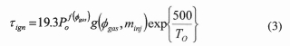 where τign is in ms, Po in bar, minj in mg and To in K. The function f(φgas) and g(φgas, minj) are determined as below: