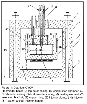 Although there have been numerous attempts to study the ignition delay of DF engines, no suitable correlation is available. It may be due to the fact that most of the previous studies have been carried out in the engines, where their results were hampered by several limitations such as inability to separate a single factor from mutually dependent parameters. Therefore, in order to establish an understanding of the way in which the ignition delay of DF combustion behaves, it is important to employ a single-shot combustion device, which enables to separate a single factor from mutually dependent parameters. A constant volume combustion vessel (CVCV) suits this purpose. CVCV is a device for simulation of the real combustion process by injecting the diesel fuel into a high pressure and temperature air charge mixture.