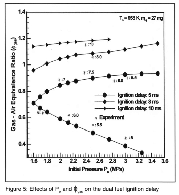 □ A modified ignition delay correlation has been used to investigate the effects of the initial pressures and temperatures on the ignition delay period of the DF combustion process.