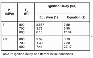 At 3 MPa, 800 K, there is almost an exact agreement, although Equation (1) gives shorter delays at lower temperatures as shown in table 1.