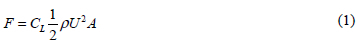 Figure 3 shows the method used to determine the resultant velocity of the RAF over the aerofoil as well as the direction and magnitude of the lift force. Vrot was replaced with velocity components (Vx and Vy) which were summed with U to determine Vtot. Equation 1 was used to calculate the lift force. The lift force was resolved into components. Torque was calculated using the product of the lift force component in the x direction and the effective moment arm: