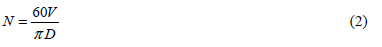 N rotational speed of rotor (rev/min)