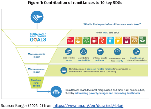 Burger, L. 2023. Remittances, a vital contributor to the Sustainable Development Goals (SDGs). Available at: https://cenfri.org/articles/remittances-a-vital-contributor-to-the-sdgs/.