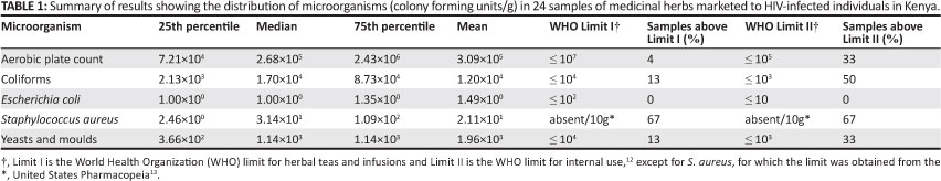 Microbial contamination of herbs marketed to HIV-infected people in Nairobi (Kenya)