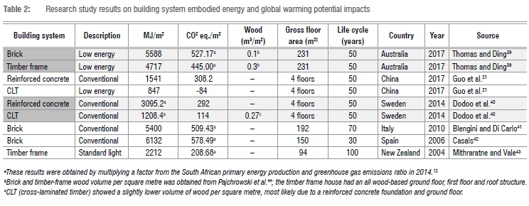 Keywords: wood-based building systems, global warming potential, embodied energy, residential housing, South Africa