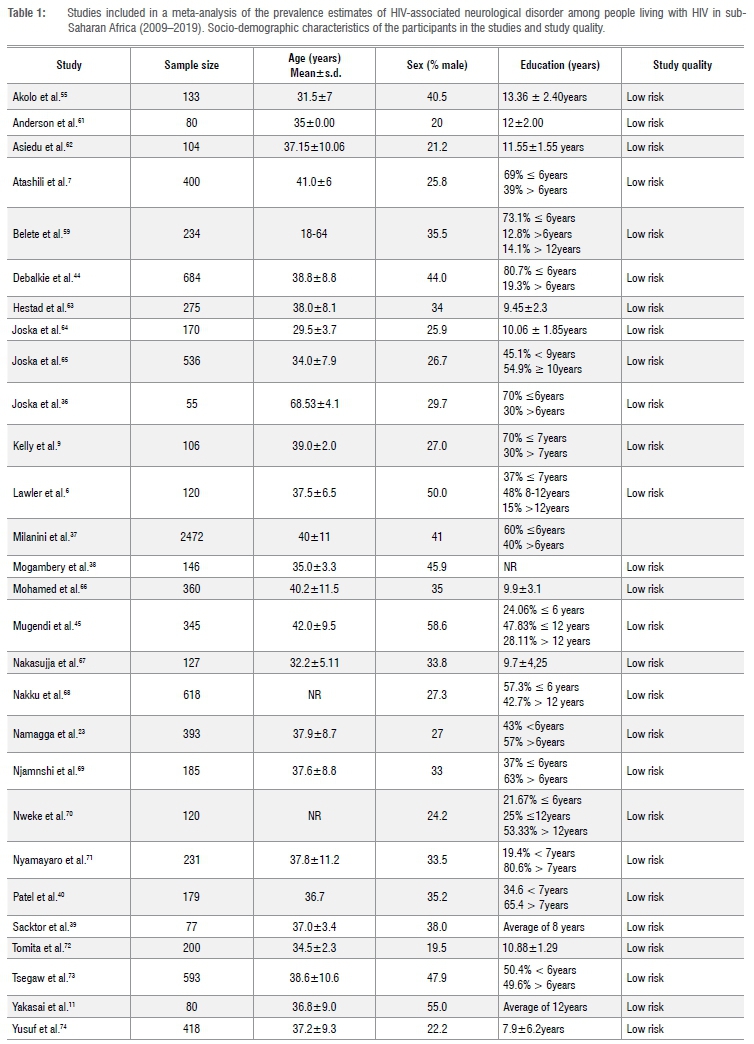 Keywords: HIV infection, neurocognitive disorder, prevalence, sub-Saharan Africa, study characteristics