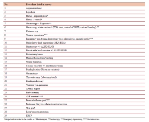 In SA, 76% of the population have no private health insurance and rely on public healthcare services.15,16 Only 17% of the population have private medical insurance and a further 7% are estimated to use private healthcare services without insurance. In this study, we recruited the opinion of general surgeons working in the private and public sector and so the healthcare needs of all South Africans are broadly represented. The data gathered in this study can therefore be used to reflect on the implications for procedural training of general surgeons practicing in SA.