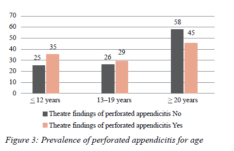 The prevalence of perforation was significantly higher among patients with WCC > 12 (58%) compared to those without WCC > 12 (34.8%) (p = 0.002). This once again is in keeping with other reports from South Africa.15 Although this study did not interrogate the association, other local authors have correlated elevated C-reactive protein (CRP) levels with increasing severity of disease.15