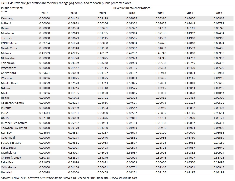 CONSERVATION IMPLICATIONS: This information will provide insights into the quality of operational efficiencies of ecotourism activities at EKZNW-controlled PPAs and motivate management to adopt cost-cutting and revenue-increasing strategies to improve operational competitiveness.