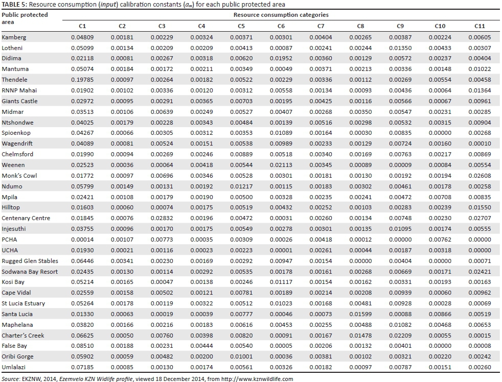 The financial data provided consisted of annual cost and revenue values of commercial operations. Cost and revenue values for each protected area were in nominal terms. Hence, the South African consumer price index was used to deflate the cost and revenue values for 2007-2013, taking 2005 as the base year. Cost and revenue items for each protected area were disaggregated and measured separately. In this study, cost categories are described as resources consumed and revenue categories as revenues generated. Thus, 11 cost categories and seven revenue categories were analysed per year, 2007-2013 (Table 1).