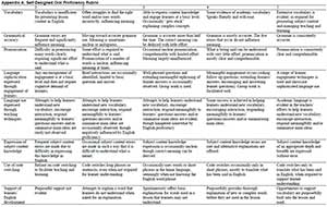 A rubric mitigates the influence of preconceptions to some extent by endeavouring to provide a uniform frame of reference against which proficiency can be rated. Our self-designed rubric (Appendix A) was informed by our conceptual framework and descriptors from the following sources: the International English Language Testing System (IELTS) Speaking: band descriptors (public version) of the British Council, IDP: IELTS Australia and Cambridge Assessment English (2015), the Oral English Proficiency Test (OEPT) of Purdue University (2012), the Stanford Foreign Language Oral Skills Evaluation Matrix (FLOSEM) designed by Padilla and Sung (1999) and adapted by Butler (2004), and descriptors included in research done by Elder (1993, 2001), Peyper (2014), and U Uys, Van der Walt, Van den Berg and Botha (2007).