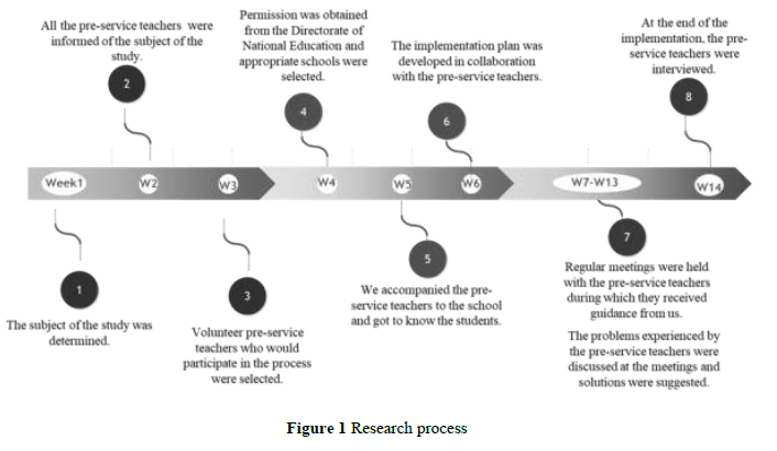 In this study we used the phenomenological research design, one of the qualitative research methods, to investigate the teaching experiences of pre-service Turkish language teachers of Syrian refugee students. This design makes inferences integrating phenomena or experiences (Bodner & Orgil, 2007). In the study, we aimed to embody the experiences and common meanings of the related phenomenon. The meaning and interpretation of the experiences that the pre-service teachers had in the service-learning process were scrutinised. In such studies, a long-term and intense interaction should be created through a cross-section, and the characteristics of the working environment should be looked at holistically (Miles & Huberman, 1994).