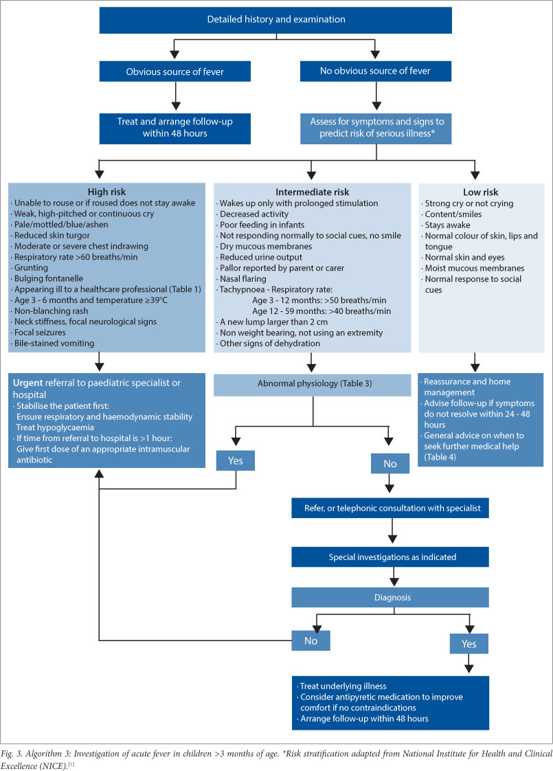 Approaches to the management of fever in children aged <1 month, 1 -3 months and >3 months are shown in Algorithms 2 and 3 (Figs 2 and 3).
