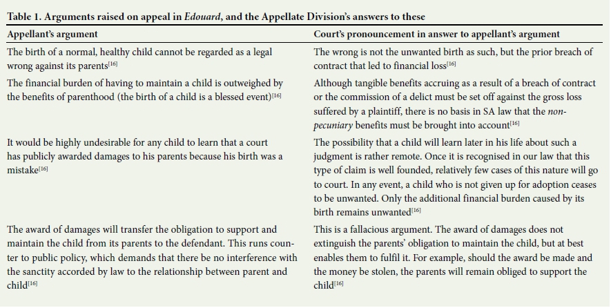 The court concluded that the defendant factually caused the damages claimed: had it not been for his misrepresentation, the plaintiffs would have taken contraceptive measures, and the child would probably not have been conceived and born.'171 However, the defendant contended that his liability should be limited by the mechanism of legal causation in terms of which damages that are too remote cannot be recovered.[17] The court found that the yardstick to be applied in determining the extent of the liability (i.e. the limitation of liability so as to exclude excessively remote damages) is that of public policy.[17] The public policy considerations that underlie the judgment in Administrator, Natal v Edouard[16] were found to be applicable in the case at hand. The court found that the limits of liability depend on the same considerations of public policy, whether a claim was founded in delict or contract.[17]