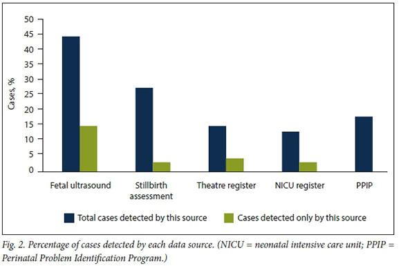 Stillbirth assessment records identified 23% of cases and the PPIP database 15%. Most of these overlapped with prenatally detected cases, but where prenatal data are not available, other sources assume importance.