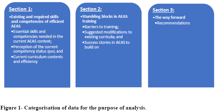 The inputs received from the focus groups were categorised under three main sections, namely; 1 - Existing and required skills and competencies of efficient AEAS, 2 - Stumbling blocks in AEAS training and 3 - The way forward. Six questions guided the focus groups. Questions 1 and 2 addressed the first section, questions 3 and 4 addressed the second section and lastly, questions 5 and 6 addressed section three. The responses to each question were analysed, and the main points will be highlighted for the results.