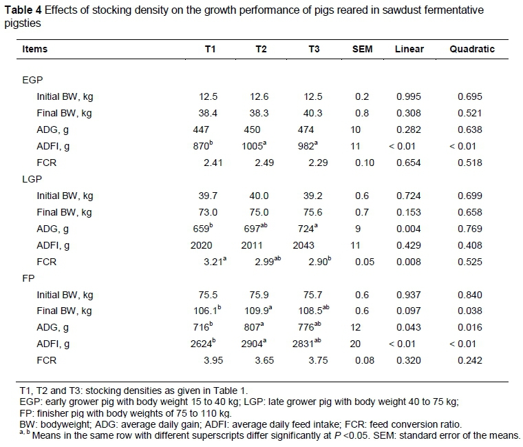 Effects of stocking density on growth performance, carcass grade and immunity of pigs housed in sawdust fermentative pigsties