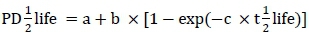 Instead, the half-life of a solid matter in the rumen was calculated using rates of degradation (c) according to Grovum & Phillips (1973), where: