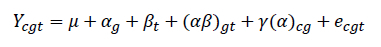 (αß)gt = the fixed interaction of the effects of group g and time t;