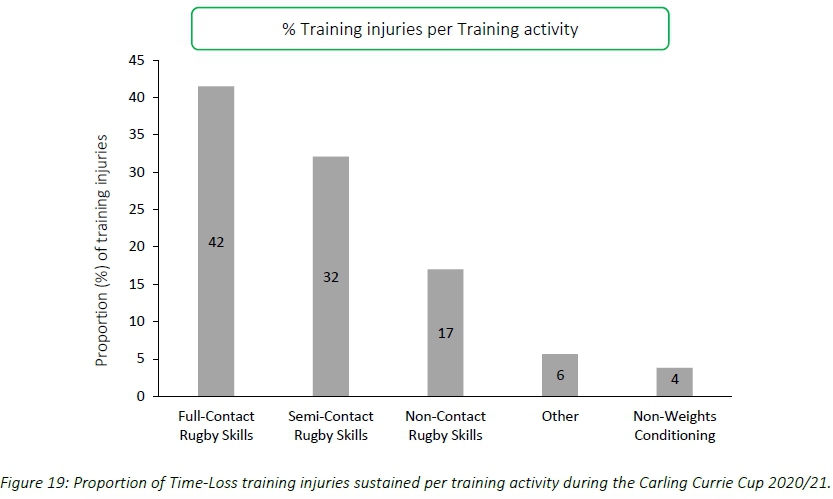 The Carling Currie Cup 2020/21 season saw the introduction of Time-Loss training injury and training exposure data being captured as a part of the SARIISPP. The addition of training exposure and injury information is a substantial addition to the SARIISPP, as it allows us to reflect a full competition injury picture. As this is the first season where training related data has been captured, this section is limited but will continue to grow and develop over the years.