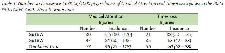 The South African Rugby Injury and Illness Surveillance and Prevention Project (SARIISPP): SARU Girls' Youth Week Injury Surveillance Report 2023