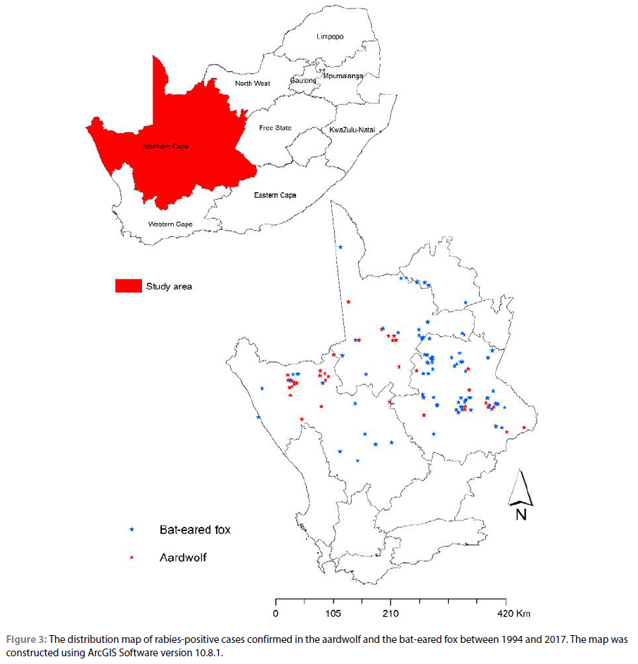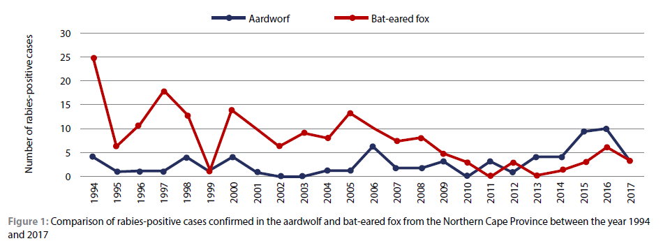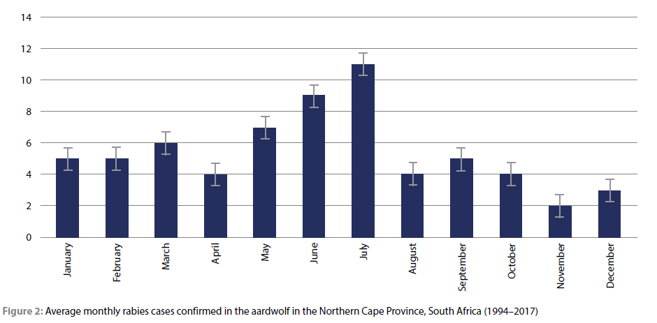 Furthermore, other areas reported 36% (n = 11) rabies-positive cases in the aardwolf between 2011 and 2017.