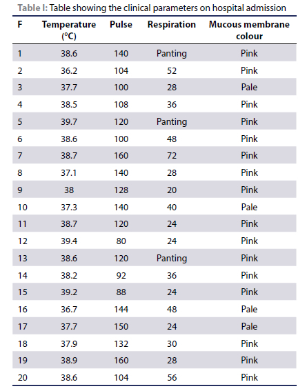 Historical data, including time of the bite incident, known medical conditions, pregnancy status and the administration of any recent medication, were recorded by means of a questionnaire. Physical examinations were performed on admission and the habitus, age, sex, breed, body weight, body condition score, body temperature, pulse and respiration were recorded. The study period extended for 72 hours from the time of the bite incident, or until euthanasia or death within this 72-hour period.