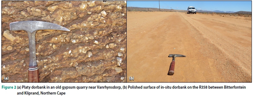 Dorbank is a recent geological phenomenon, and is currently still forming (Ellis 2002; Frey 2010; Francis et al 2013). Therefore the climatic conditions that it exists in today are likely to also be the conditions in which it will perform best if applied in engineering works. The climatic N-value, developed by Weinert (1980), provides appropriate geographical constraints to the occurrence of different pedocrete types in South Africa (Brink 1985). Figure 2(a) shows platy dorbank.
