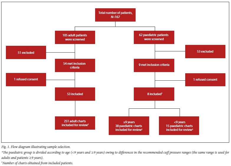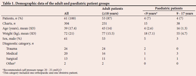 A prospective cross-sectional chart review and interventional study of CP measurement and adjustment was undertaken at the main ICU of the Chris Hani Baragwanath Academic Hospital (CHBAH), SA. This multidisciplinary unit caters for both adult and paediatric patients. The study period spanned 50 consecutive days (12 June -31 July 2017). All patients who had a cuffed tracheal tube in situ for >24 hours were included; patients whose cuffs were deflated intentionally were excluded. The unit of measurement was patient days and therefore multiple readings were obtained from the same patient.