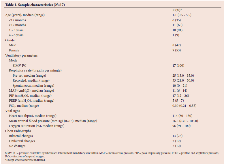 A prospective descriptive study was conducted in the paediatric intensive care unit at Red Cross War Memorial Children's Hospital, Cape Town, South Africa. Ethical approval was obtained from the Human Research Ethics Committee of the University of Cape Town (ref. no. 179/2013) Informed consent was obtained from the parents or legal guardians of the children, and assent was obtained from the child where appropriate.