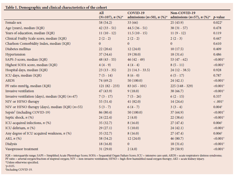 Informed consent was sought from patients or, alternatively, their surrogate decision-makers at ICU discharge or shortly thereafter in the ward, depending on when it was most feasible. Where a surrogate decision-maker provided the initial assent, consent was obtained from the patient when they regained the capacity to consent. Permission for the study was obtained from the Nelson Mandela University's Research Ethics Committee (Human) (ref. no. H20-HEA-PSY-001).