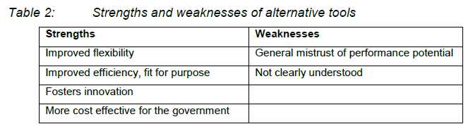 A fundamental characteristic of all the environmental enforcement categories and tools is that no one enforcement category or tool offers a one-size-fits-all solution to enforcement challenges. Every tool or category of tools has particular strengths and weaknesses characterised by very specific elements relating to enforcement performance. See Table 1 for a generic list of the strengths and weaknesses of the command and control category tools and Table 2 for the strengths and weaknesses of some alternative enforcement tools. As argued in the introduction to this article, the debate on alternative environmental enforcement tools tends to focus on finding empirical evidence to answer the question as to whether these tools do indeed contribute to the environmental enforcement effort. Reference is made later in this article to the research findings of important studies that aim to empirically establish whether alternative enforcement tools indeed contribute effectively to the environmental enforcement effort.