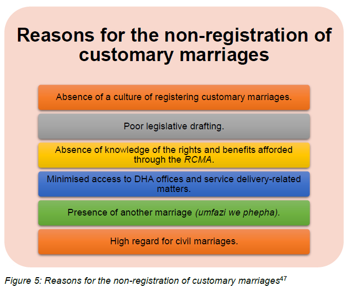 Factors that have been found as reasons for the non-registration of customary marriages are shown in Figure 5 and explained below: