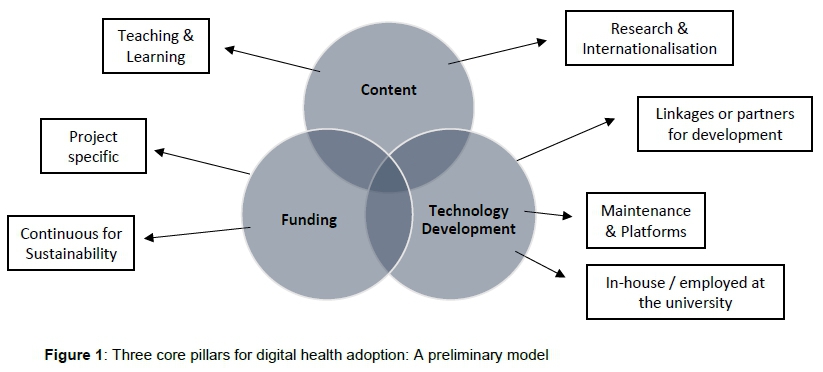 mHealth technologies also have the potential to greatly impact health research, healthcare, health outcomes, and learning. However, it has also been shown that the exponential growth of the technology has outpaced the science of mHealth (Nilsen et al. 2012). Due to some health sciences curricula having no room to include mHealth training, and practicing professionals do not have the time to research these approaches or mediums, further research would fill this gap and warrants the need to better understand students and the healthcare setting in the fourth industrial revolution (4IR). It also warrants the need to develop an application and platform, as well as a strong network, that will bridge this gap (between mHealth and e-learning in healthcare technology and innovation) in the health sciences fraternity. Given the unsuccessful rate of e-learning within the health sciences area (Lindenmaier et al. 2018), a virtual centre (focusing on healthcare innovation) and research project has been conceptualised to fill this void by researching how such a platform and curricula can be merged and subsequently evaluated and established, to optimise both learning and healthcare with patients, as well as quality assurance and student involvement for health sciences students.