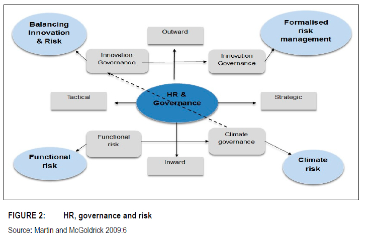 Despite the above scandals, Martin and McGoldrick (2009:4) found that surprisingly little has been written about HR and governance in the recent past. Through their review of the major academic databases, only a small number of HR articles cite corporate governance in their keywords, although prominent HR theorists have called for ways of conceptualising HRM from a governance perspective.