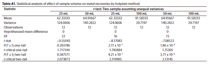 Effect of sample volume on the recovery of heavy metals in hotplate digestion