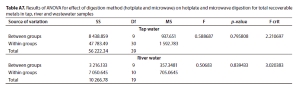 The digestion of the samples was done using a hotplate or microwave in order to determine the total recoverable and total dissolved metals in all the water samples. Spiked recovery tests were conducted for the optimization studies where the recoveries were calculated for all digestion methods.