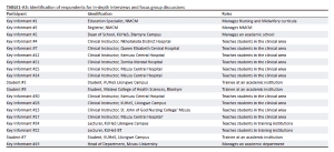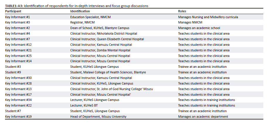Nursing and midwifery faculty members, clinical instructors, and nursing and midwifery officials from the regulatory body participated in in-depth interviews. They were aged 30 years and above and had more than 6 months of work experience. These participants held bachelor's (n = 17), master's (n = 17) and PhD (n = 3) degrees, and all were Malawians. Refer to Table 3 for detailed demographics of the in-depth interview of participants.