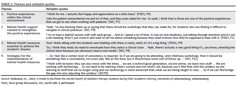 This article is partially based on L.M's dissertation titled 'A model to facilitate the mental health of radiation therapy students during their academic training' towards the degree PhD Health Sciences in the Department of Medical Imaging and Radiation, University of Johannesburg, South Africa in November 2023, with supervisor Karien Henrico. It is available here: https://hdl.handle.net/10210/516528.
