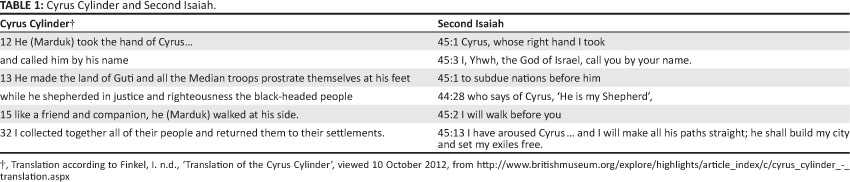Interestingly, the attitude of the author(s) of Isaiah 40-55 is to take over the official rhetoric of the Cyrus cylinder (see Table 1) and to proclaim the Persian ruler, by doing so, to be Yhwh's messiah for Israel and the world.