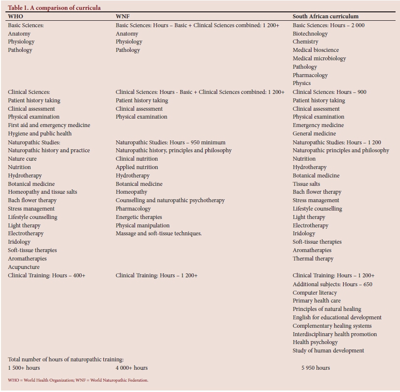 A comparative analysis and evaluation of the naturopathic curriculum in South Africa